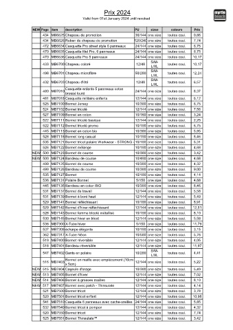 530 MB7145 Bonnet hiver en tricot 12/144 one size toutes coul. 5,58