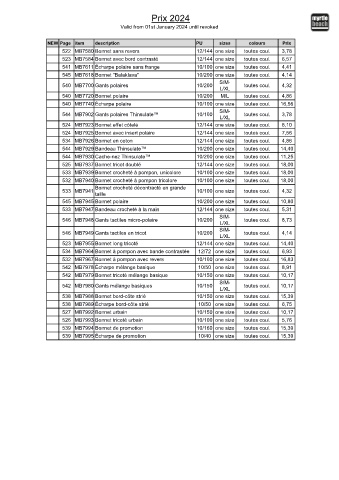 522 MB7580 Bonnet sans revers 12/144 one size toutes coul. 3,78
