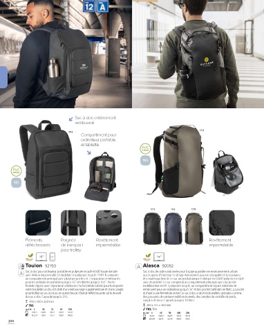 votre bouteille. Le dos est doté d’un rembourrage supplémentaire et d’une sangle rembourré pour un ordinateur jusqu’à 14’’ et des poches latérales en filets. La poche