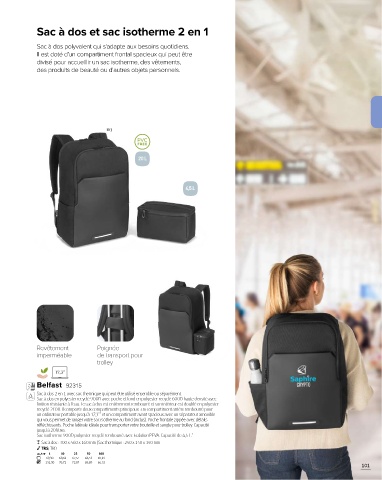 réfléchissants. Poche latérale idéale pour transporter votre bouteille et sangle pour trolley. Capacité