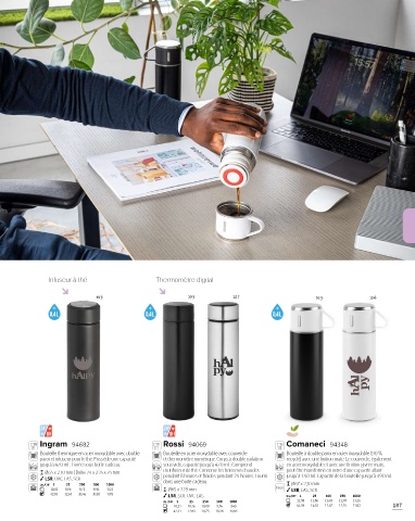 paroi et infuseur pour le thé. Posséde une capacité et thermomètre numérique. Corps à double isolation recyclé) avec une finition mate. Le couvercle, également