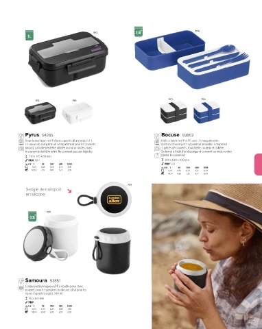 Le couvercle comporte un compartiment pour les couverts (680 mL chacun) et 1 séparateur amovible. Comprend