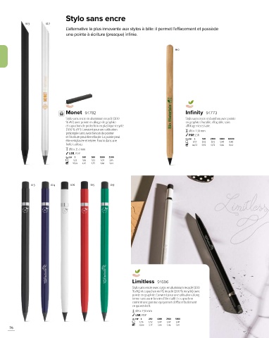 Stylo sans encre en aluminium recyclé (100 Stylo sans encre en bambou avec pointe