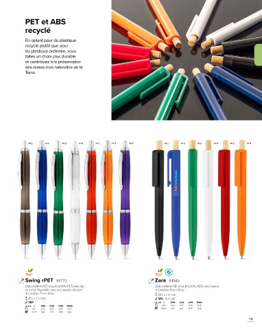 Stylo à bille en PET recyclé (100% rPET) avec clip Stylo à bille en ABS recyclé (100% rABS) avec bouton