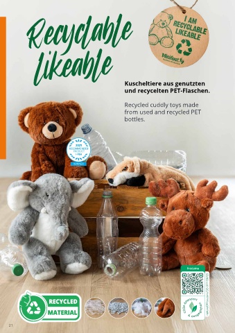 Recyclable likeable Kuscheltiere aus genutzten und recycelten PET-Flaschen. Recycled cuddly toys made from used and recycled PET bottles. 21