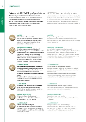 umaService Kundenauf trages bestmöglich unterstützen. Wir stehen Ihnen in processing your customer order. We are always at your disposal