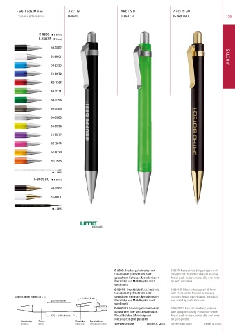 Colour code/Refills 0-8600 0-8607 B 0-8600 GO 179