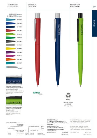 Colour code/Refills 0-9560 GUM 0-9560 M GUM 247
