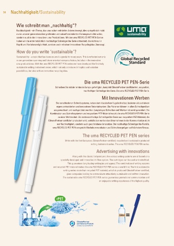 sondern auch in den innovativen uma Produktideen. Mit den uma RECYCLED PET PEN-Serien