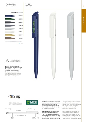 recyceltem Post-Consumer-Kunststoff. recycled post-consumer plastic.