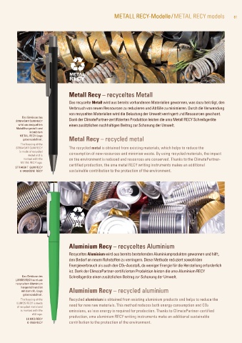rAL logo. production, uma aluminium RECY writing instruments make an additional sustainable